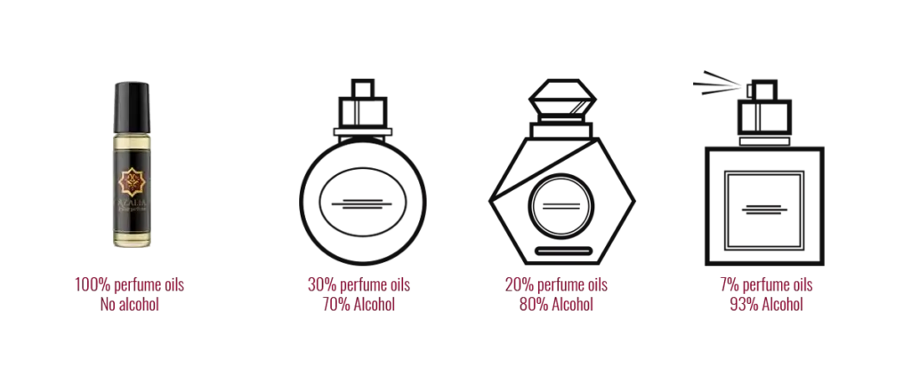 Tradiciniuose arabų kvepaluose nėra alkoholio, bet tik įvairių aliejų (mediena, alavijas, pačuliai, mira, smilkalai ir tt) mišiniai.