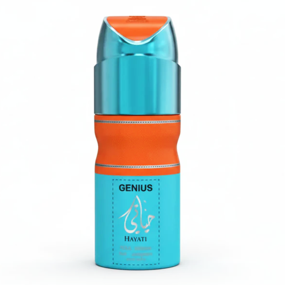 Genius Hayati is a fresh woody roll-on deodorant-anti-perspirant for men and women.